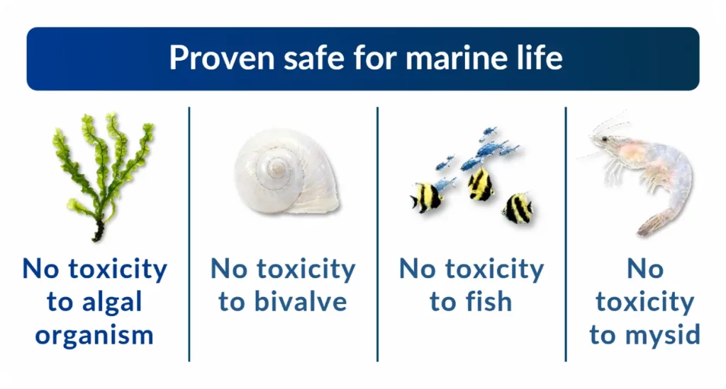 Through verification, Nippon Paint Marine’s AQUATERRAS has been proven to be non-harmful to marine life such as algae, bivalves, fish, and shrimp. In an independent study conducted by PML Applications, no detectable release of zinc or copper was found during cleaning tests using soft burshes, medium brushes or water jets. Vessels using the coating can save 14.7% in fuel consumption compared with those using conventional hull coatings.